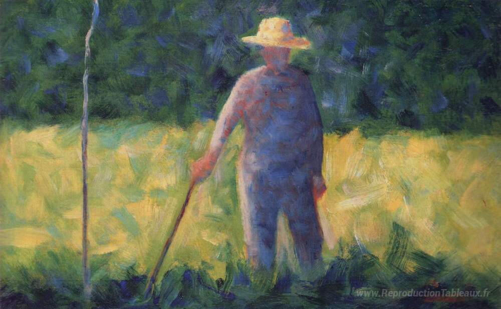 Nous vous proposons une reproduction artisanale sur toile du célèbre tableau 'Jardinier' de Georges Seurat, provenant du Musée de la Reproduction.