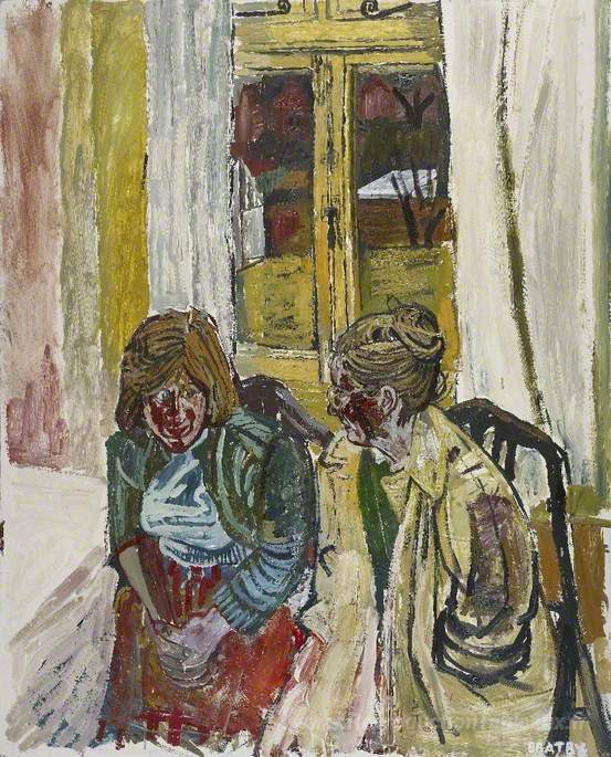 Nous vous proposons une reproduction artisanale sur toile du célèbre tableau 'Jean et Susan' de John Bratby, provenant du Musée de la Reproduction.