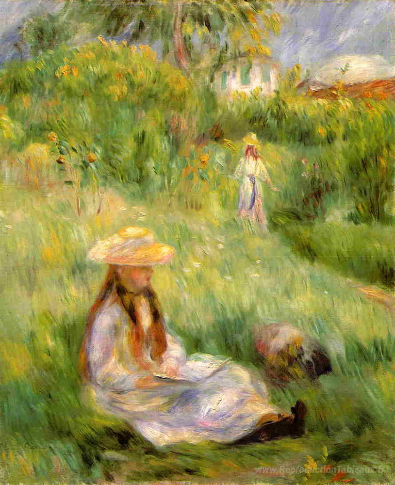 Nous vous proposons une reproduction artisanale sur toile du célèbre tableau 'Jeune fille dans le jardin de mezy' de Pierre-Auguste Renoir, provenant du Musée de la Reproduction.