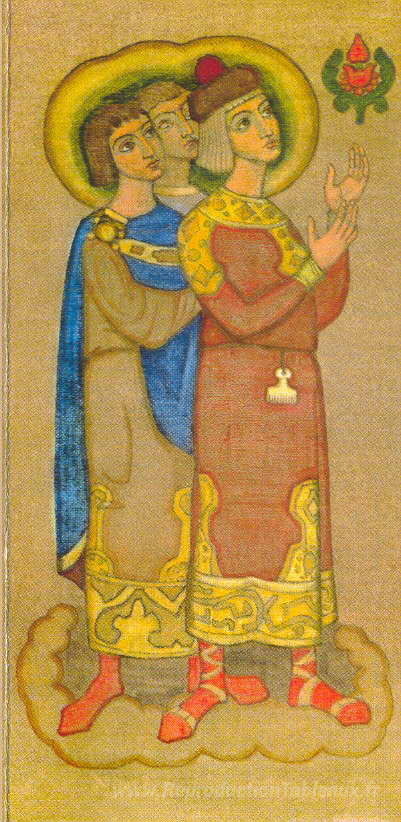 Nous vous proposons une reproduction artisanale sur toile du célèbre tableau 'Jeunes hommes, successeurs' de Nicholas Roerich, provenant du Musée de la Reproduction.