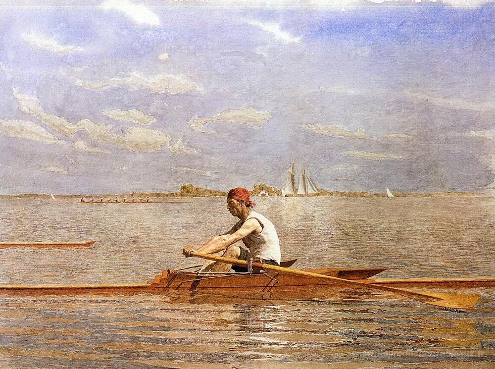 Nous vous proposons une reproduction artisanale sur toile du célèbre tableau 'John Biglin en un seul écran' de Thomas Eakins, provenant du Musée de la Reproduction.