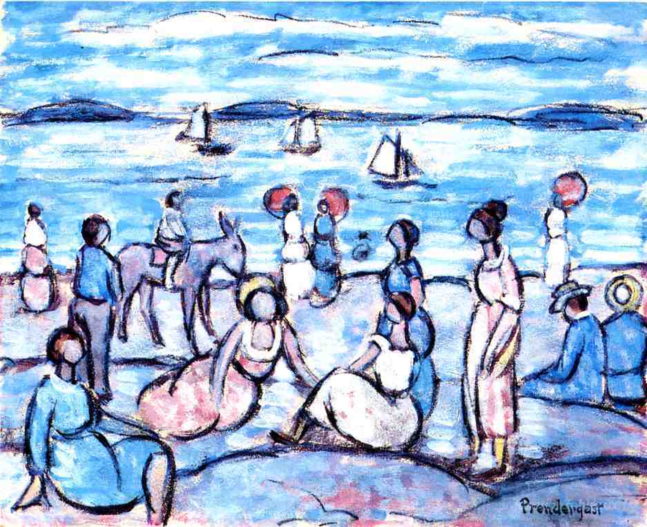 Nous vous proposons une reproduction artisanale sur toile du célèbre tableau 'Jouant à Salem, Massachusetts' de Maurice Prendergast, provenant du Musée de la Reproduction.