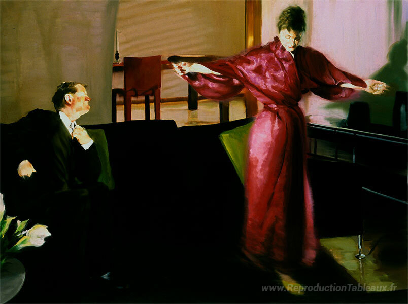 Nous vous proposons une reproduction artisanale sur toile du célèbre tableau 'Krefeld progetto Living Room Scene 3' de Eric Fischl, provenant du Musée de la Reproduction.