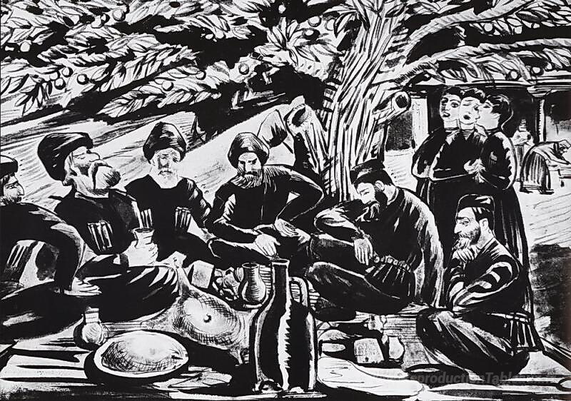 Nous vous proposons une reproduction artisanale sur toile du célèbre tableau 'La bénédiction des personnes âgées' de Martiros Saryan, provenant du Musée de la Reproduction.