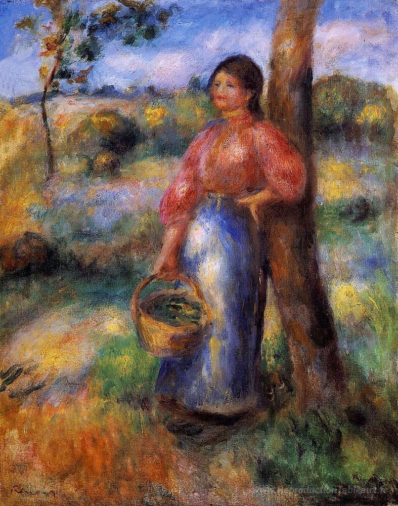 Nous vous proposons une reproduction artisanale sur toile du célèbre tableau 'La berger' de Pierre-Auguste Renoir, provenant du Musée de la Reproduction.