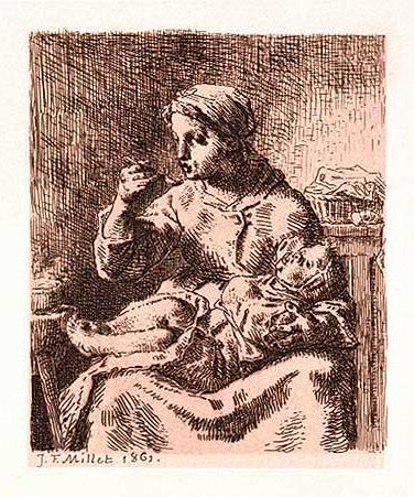 Nous vous proposons une reproduction artisanale sur toile du célèbre tableau 'La bouillie' de Jean-Francois Millet, provenant du Musée de la Reproduction.