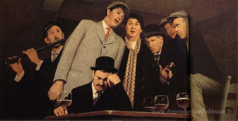 Nous vous proposons une reproduction artisanale sur toile du célèbre tableau 'La chanson folk sentimentale' de Grant Wood, provenant du Musée de la Reproduction.