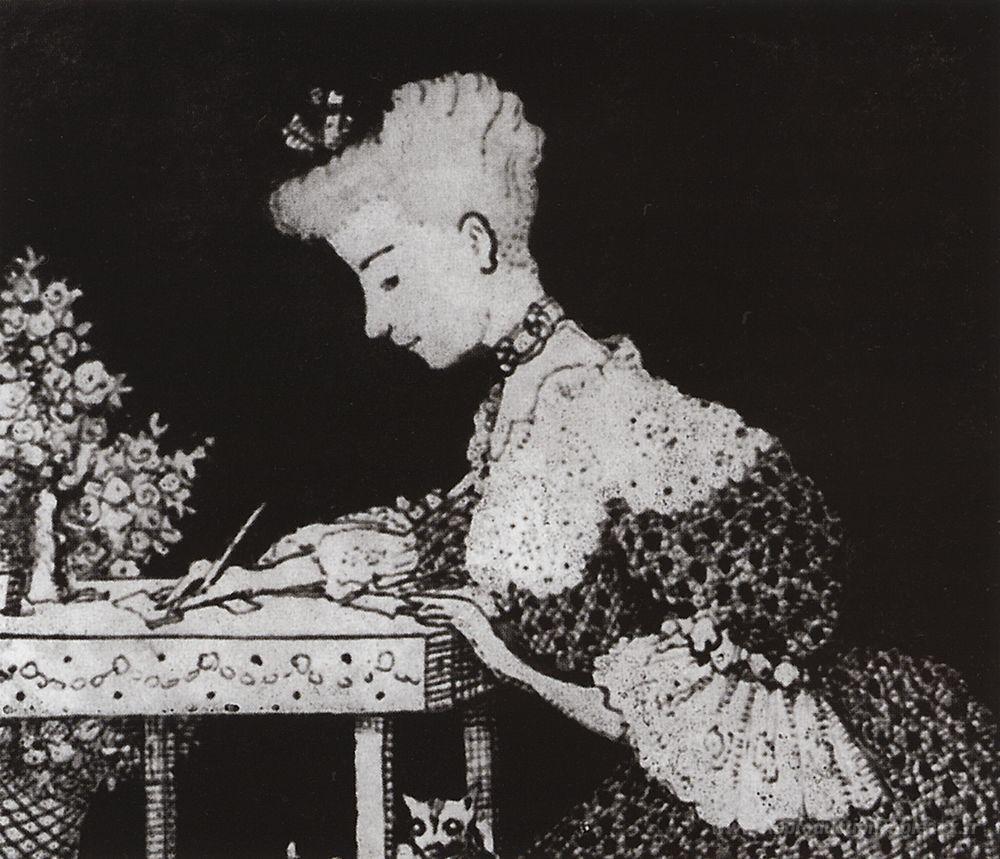 Nous vous proposons une reproduction artisanale sur toile du célèbre tableau 'La dame derrière le bureau (lettre anonyme)' de Konstantin Somov, provenant du Musée de la Reproduction.
