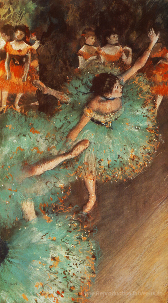 Nous vous proposons une reproduction artisanale sur toile du célèbre tableau 'La danseuse verte' de Edgar Degas, provenant du Musée de la Reproduction.