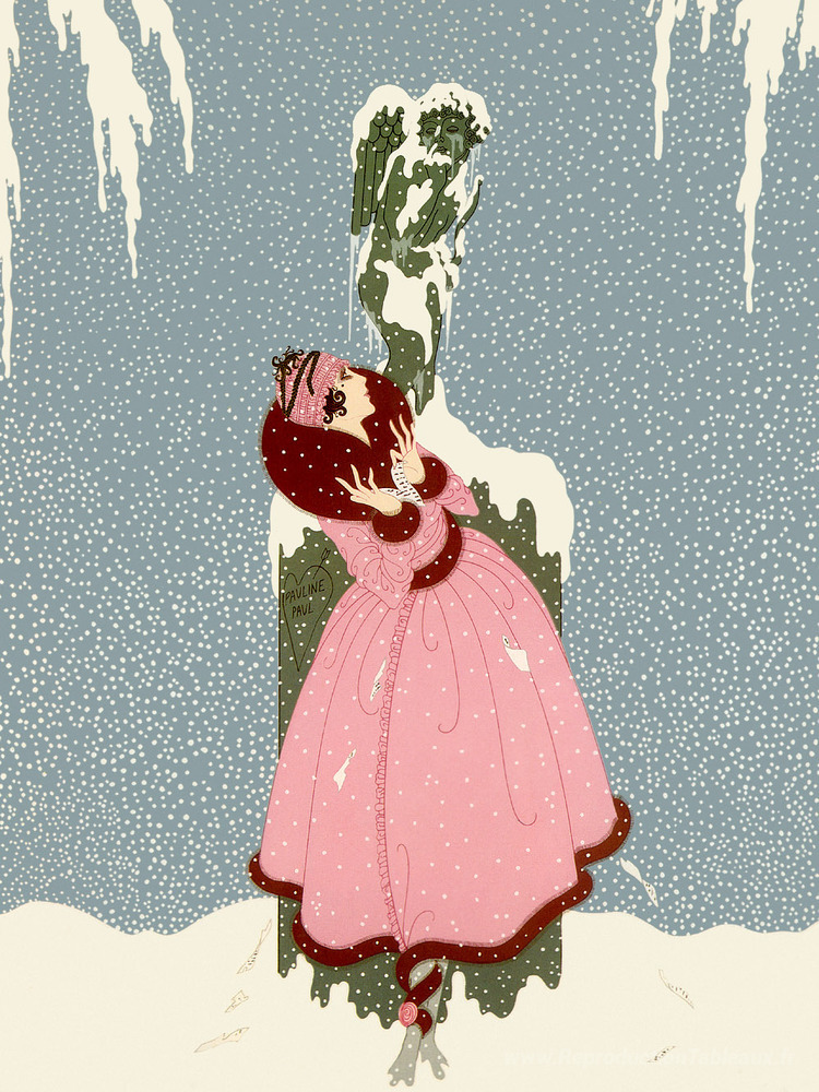 Nous vous proposons une reproduction artisanale sur toile du célèbre tableau 'La fin de la romance' de Erte, provenant du Musée de la Reproduction.