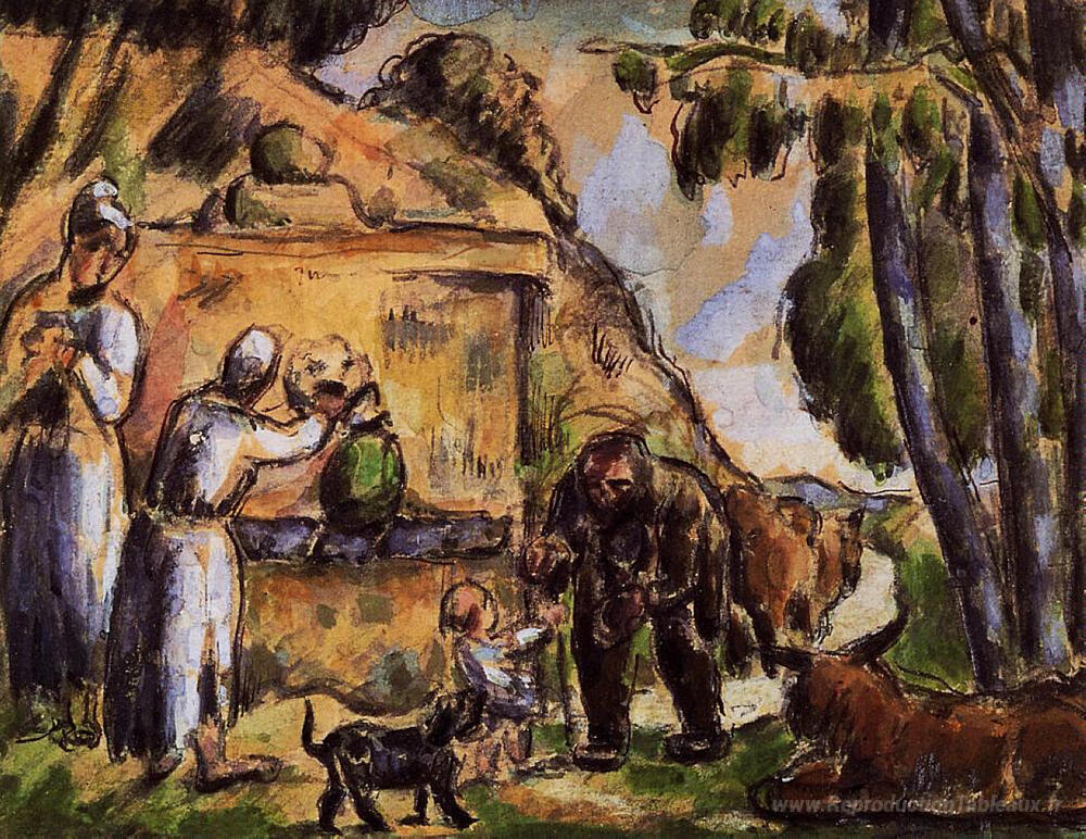 Nous vous proposons une reproduction artisanale sur toile du célèbre tableau 'La fontaine' de Paul Cezanne, provenant du Musée de la Reproduction.
