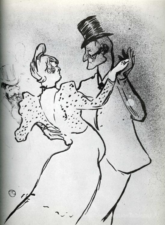 Nous vous proposons une reproduction artisanale sur toile du célèbre tableau 'La Goulue et Valentin, Waltz' de Henri de Toulouse-Lautrec, provenant du Musée de la Reproduction.