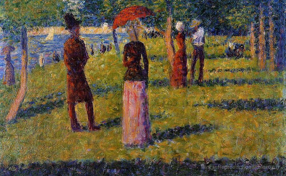 Nous vous proposons une reproduction artisanale sur toile du célèbre tableau 'La jupe de couleur corde' de Georges Seurat, provenant du Musée de la Reproduction.