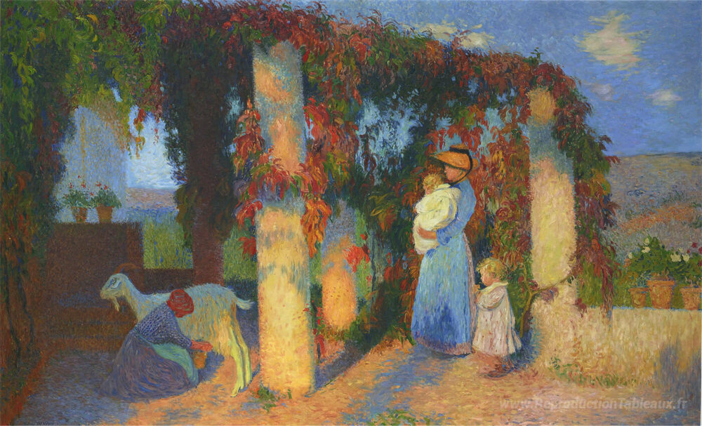 Nous vous proposons une reproduction artisanale sur toile du célèbre tableau 'La pergola à Marquayrol' de Henri Martin, provenant du Musée de la Reproduction.