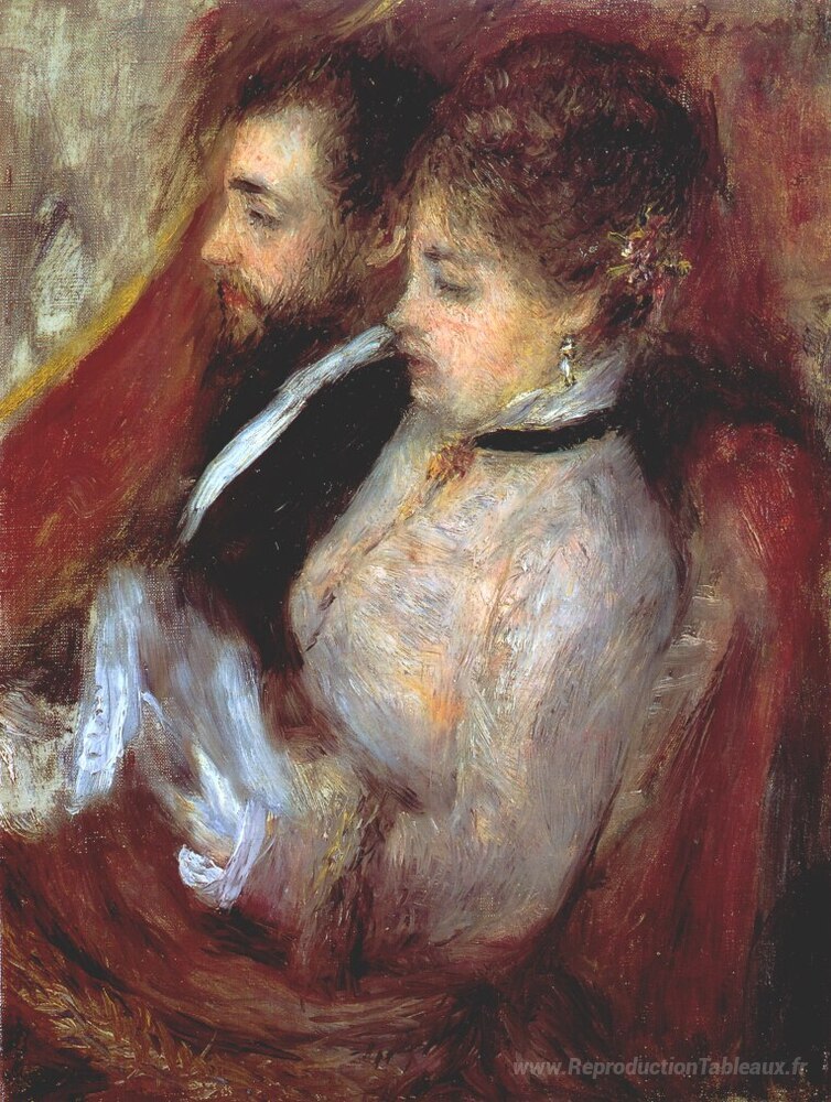 Nous vous proposons une reproduction artisanale sur toile du célèbre tableau 'La petite boîte de théâtre' de Pierre-Auguste Renoir, provenant du Musée de la Reproduction.
