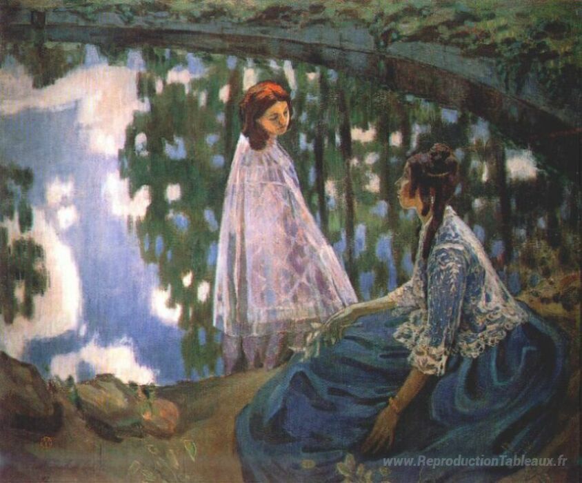 Nous vous proposons une reproduction artisanale sur toile du célèbre tableau 'La piscine' de Victor Borisov-Musatov, provenant du Musée de la Reproduction.
