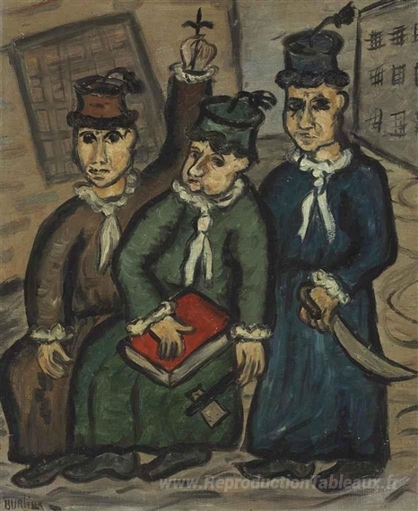 Nous vous proposons une reproduction artisanale sur toile du célèbre tableau 'La procession' de David Burliuk, provenant du Musée de la Reproduction.