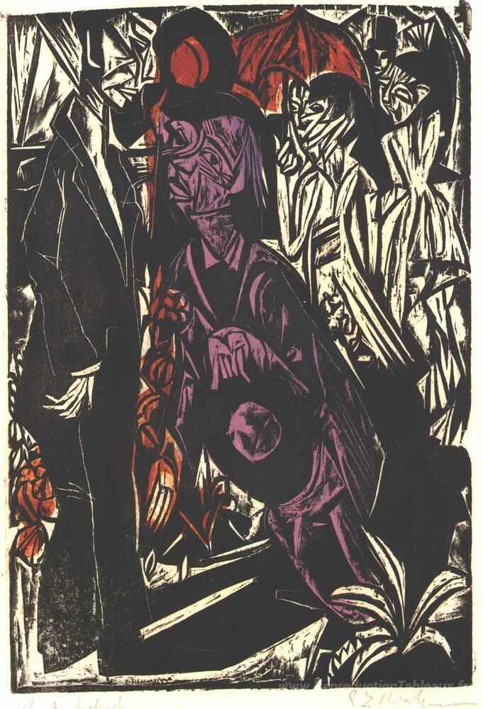 Nous vous proposons une reproduction artisanale sur toile du célèbre tableau 'La vente de l'ombre' de Ernst Ludwig Kirchner, provenant du Musée de la Reproduction.