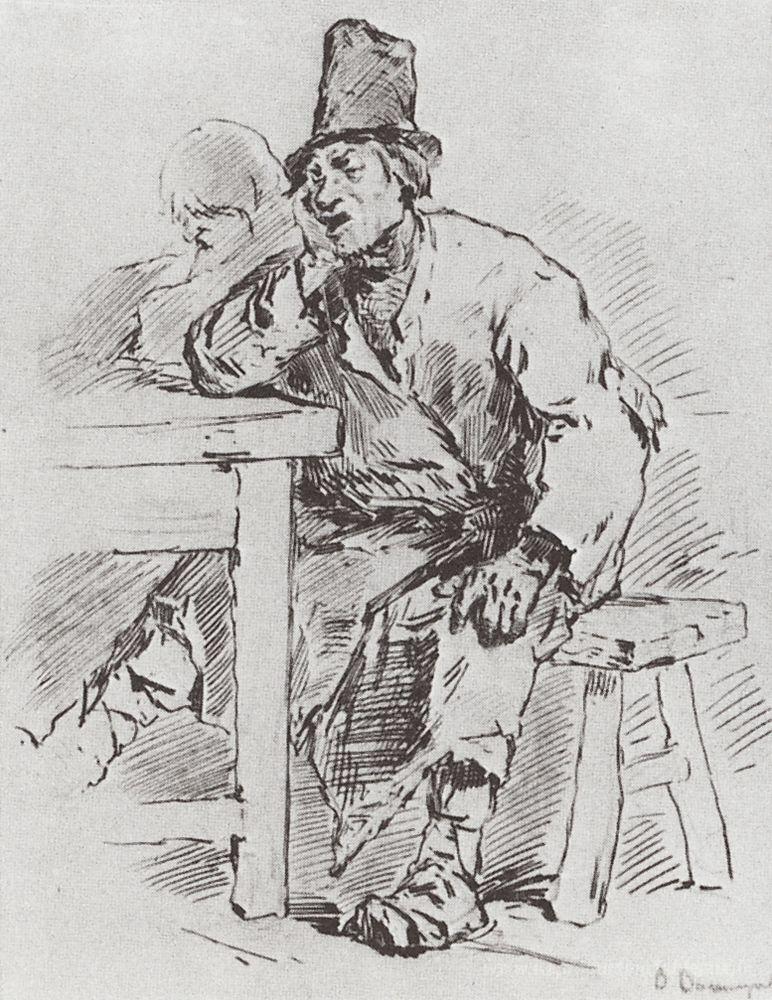 Nous vous proposons une reproduction artisanale sur toile du célèbre tableau 'L'agriculteur à la table' de Viktor Vasnetsov, provenant du Musée de la Reproduction.