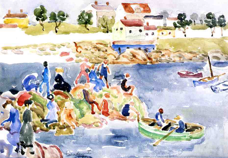 Nous vous proposons une reproduction artisanale sur toile du célèbre tableau 'L'anse' de Maurice Prendergast, provenant du Musée de la Reproduction.