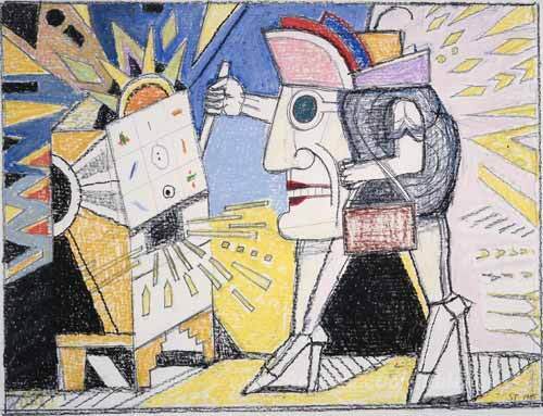 Nous vous proposons une reproduction artisanale sur toile du célèbre tableau 'Las Vegas' de Saul Steinberg, provenant du Musée de la Reproduction.