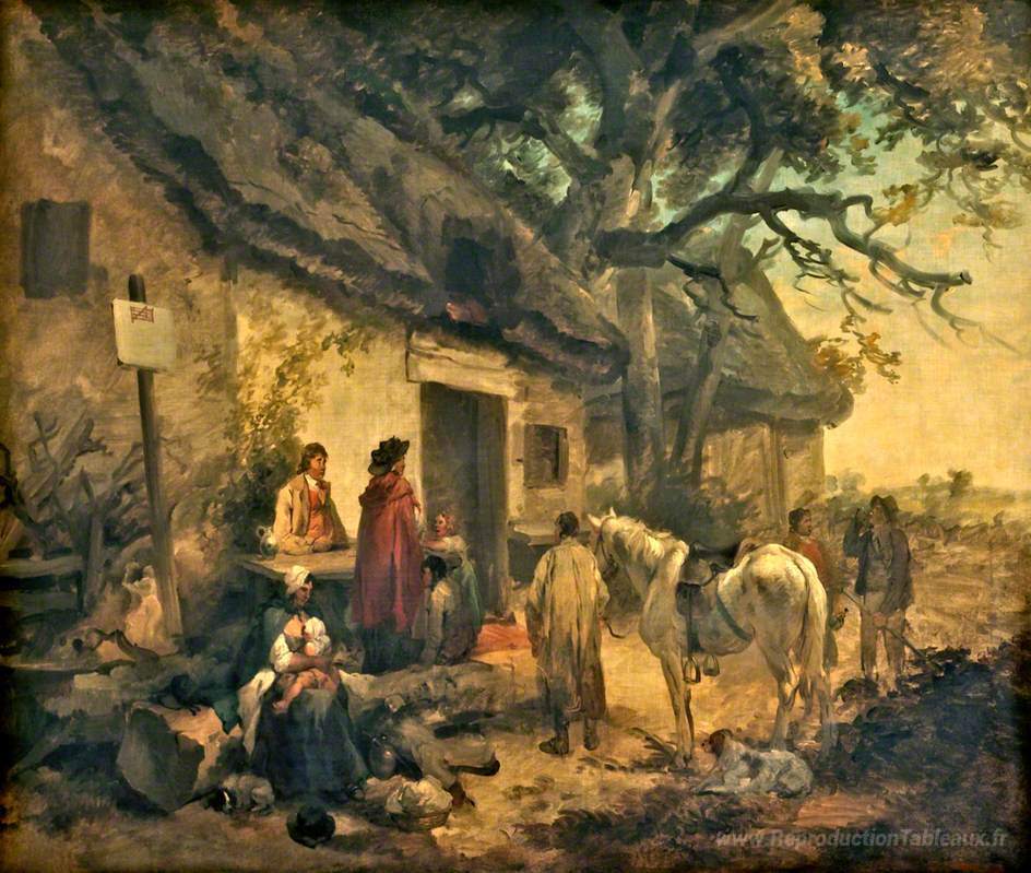 Nous vous proposons une reproduction artisanale sur toile du célèbre tableau 'L'auberge en bordure de route' de George Morland, provenant du Musée de la Reproduction.