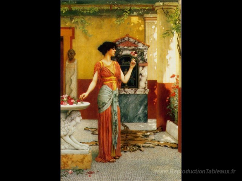Nous vous proposons une reproduction artisanale sur toile du célèbre tableau 'Le bouquet' de John William Godward, provenant du Musée de la Reproduction.