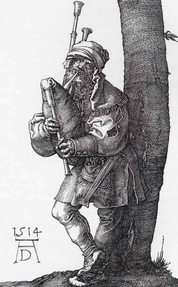 Nous vous proposons une reproduction artisanale sur toile du célèbre tableau 'Le cornemuse' de Albrecht Durer, provenant du Musée de la Reproduction.