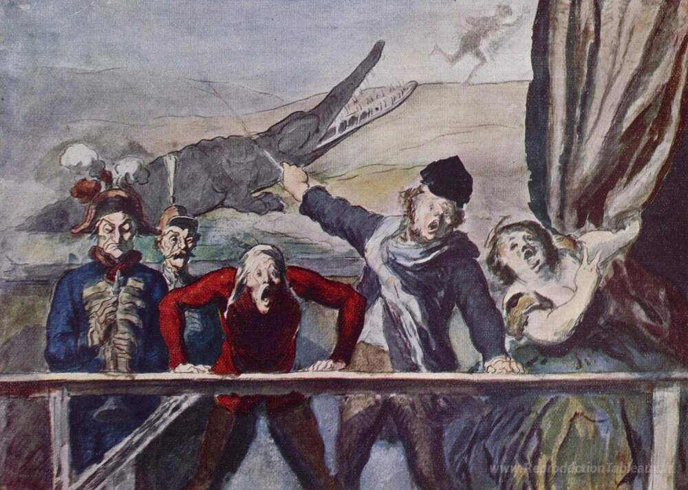 Nous vous proposons une reproduction artisanale sur toile du célèbre tableau 'Le défilé du carnaval' de Honore Daumier, provenant du Musée de la Reproduction.