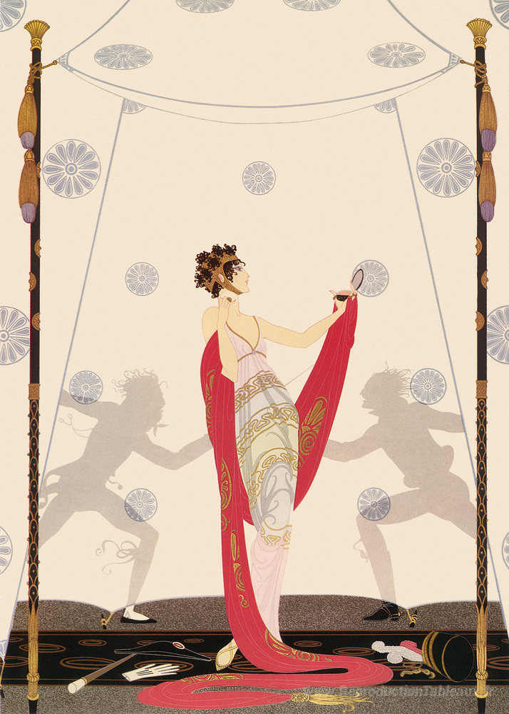 Nous vous proposons une reproduction artisanale sur toile du célèbre tableau 'Le duel' de Erte, provenant du Musée de la Reproduction.