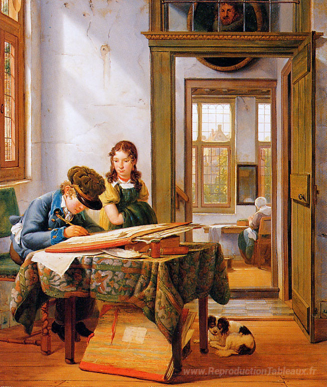 Nous vous proposons une reproduction artisanale sur toile du célèbre tableau 'Le jeune dessinateur' de Abraham van Strij, provenant du Musée de la Reproduction.