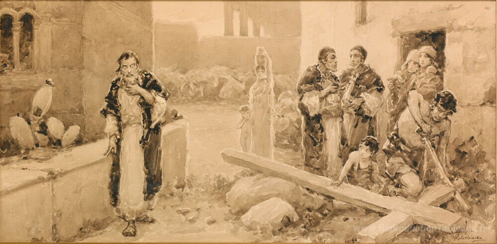 Nous vous proposons une reproduction artisanale sur toile du célèbre tableau 'Le jeune menuisier' de Wilhelm Kotarbinski, provenant du Musée de la Reproduction.