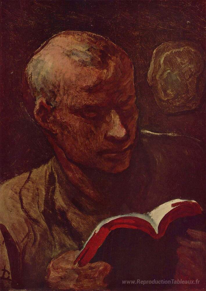 Nous vous proposons une reproduction artisanale sur toile du célèbre tableau 'Le lecteur' de Honore Daumier, provenant du Musée de la Reproduction.