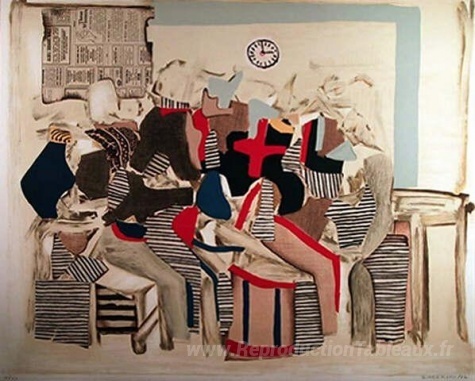 Nous vous proposons une reproduction artisanale sur toile du célèbre tableau 'Le lieu de rencontre' de Conrad Marca-Relli, provenant du Musée de la Reproduction.