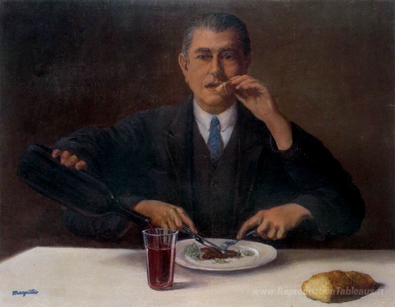 Nous vous proposons une reproduction artisanale sur toile du célèbre tableau 'Le magicien (autoportrait avec quatre bras)' de Rene Magritte, provenant du Musée de la Reproduction.