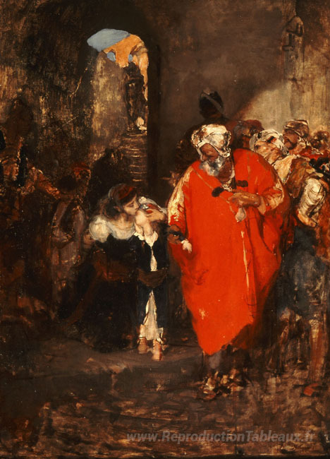 Nous vous proposons une reproduction artisanale sur toile du célèbre tableau 'Le marché des esclaves' de Nikolaos Gyzis, provenant du Musée de la Reproduction.