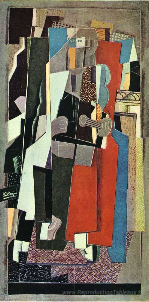 Nous vous proposons une reproduction artisanale sur toile du célèbre tableau 'Le musicien' de Georges Braque, provenant du Musée de la Reproduction.