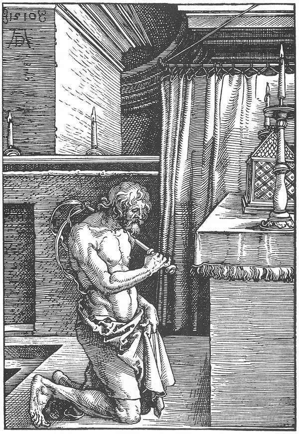 Nous vous proposons une reproduction artisanale sur toile du célèbre tableau 'Le pénitent' de Albrecht Durer, provenant du Musée de la Reproduction.