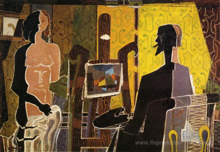 Nous vous proposons une reproduction artisanale sur toile du célèbre tableau 'Le peintre et son modèle' de Georges Braque, provenant du Musée de la Reproduction.