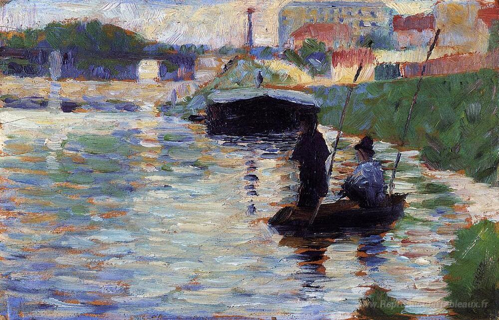 Nous vous proposons une reproduction artisanale sur toile du célèbre tableau 'Le pont - vue de la Seine' de Georges Seurat, provenant du Musée de la Reproduction.