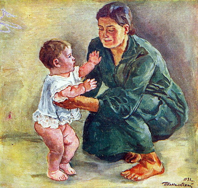 Nous vous proposons une reproduction artisanale sur toile du célèbre tableau 'Le premier pas' de Pyotr Konchalovsky, provenant du Musée de la Reproduction.