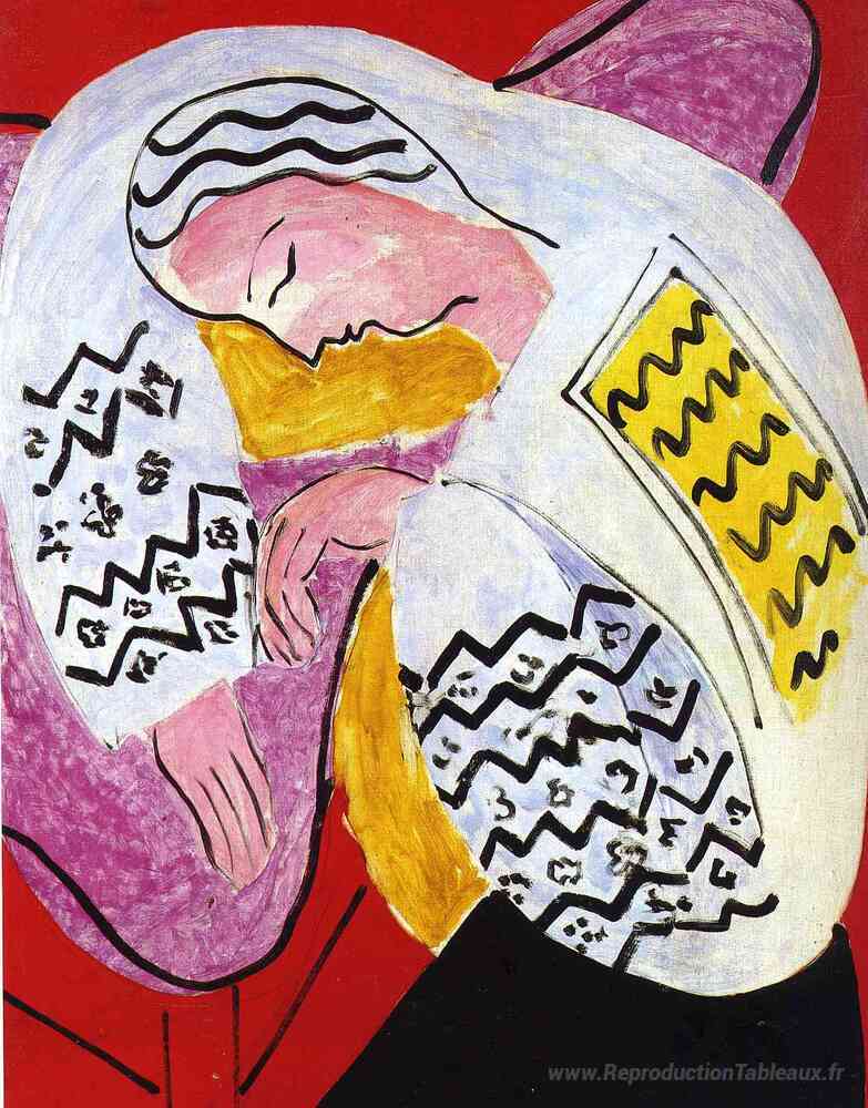Nous vous proposons une reproduction artisanale sur toile du célèbre tableau 'Le rêve' de Henri Matisse, provenant du Musée de la Reproduction.
