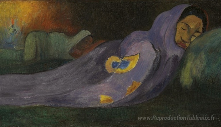 Nous vous proposons une reproduction artisanale sur toile du célèbre tableau 'Le rêve' de Paul Gauguin, provenant du Musée de la Reproduction.