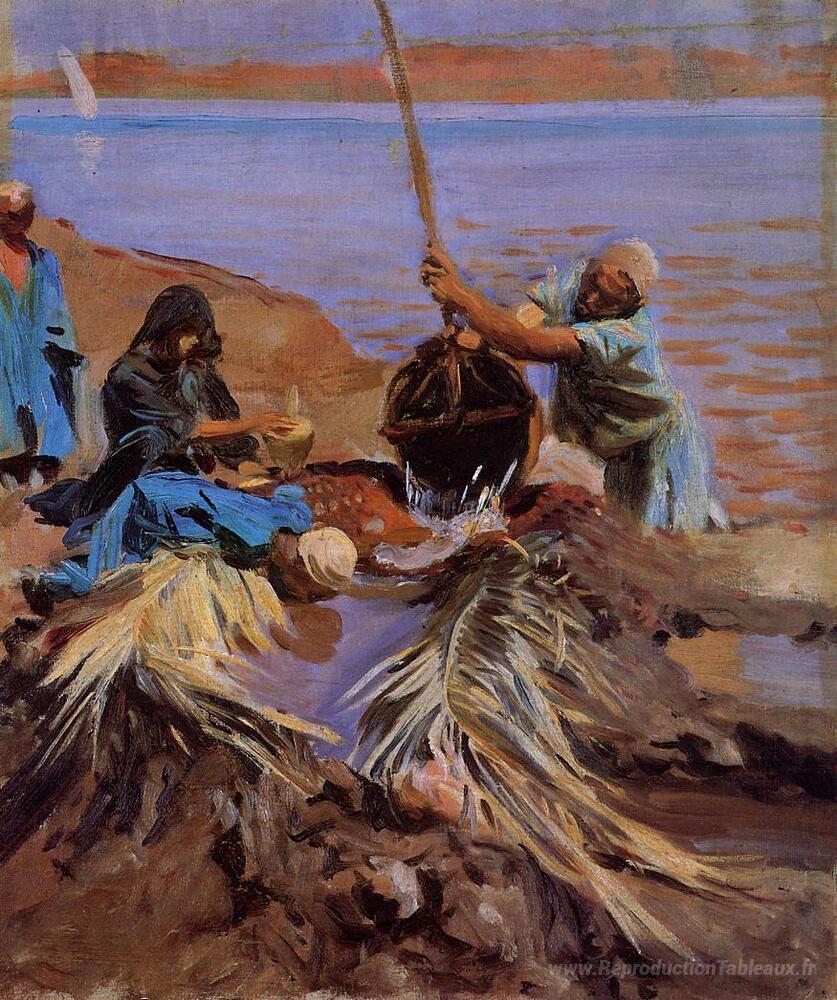 Nous vous proposons une reproduction artisanale sur toile du célèbre tableau 'Les Égyptiens élevant de l'eau du Nil' de John Singer Sargent, provenant du Musée de la Reproduction.