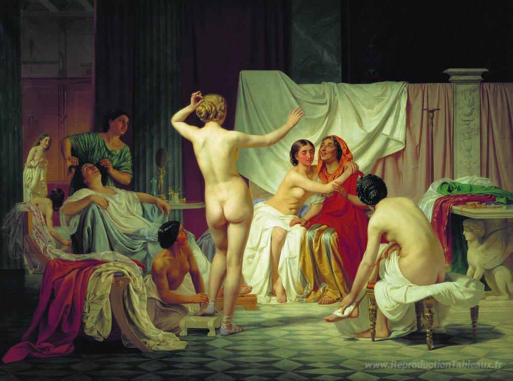 Nous vous proposons une reproduction artisanale sur toile du célèbre tableau 'Les bains romains' de Fyodor Bronnikov, provenant du Musée de la Reproduction.