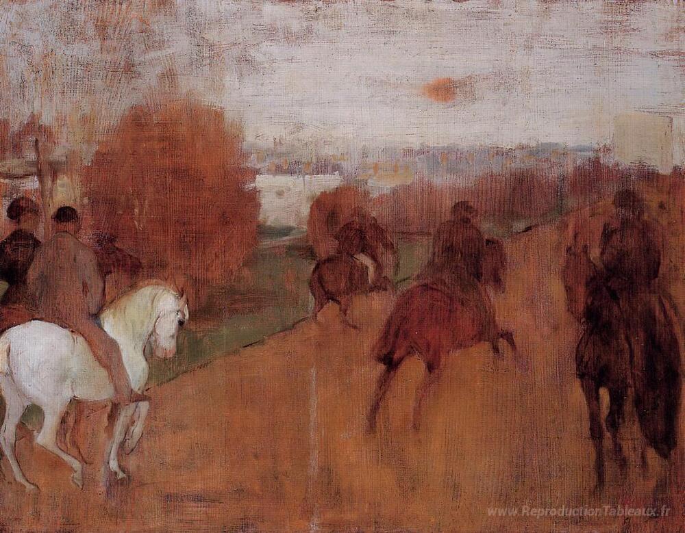 Nous vous proposons une reproduction artisanale sur toile du célèbre tableau 'Les coureurs sur une route' de Edgar Degas, provenant du Musée de la Reproduction.