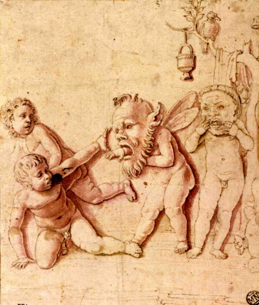 Nous vous proposons une reproduction artisanale sur toile du célèbre tableau 'Les enfants jouant avec des masques' de Andrea Mantegna, provenant du Musée de la Reproduction.