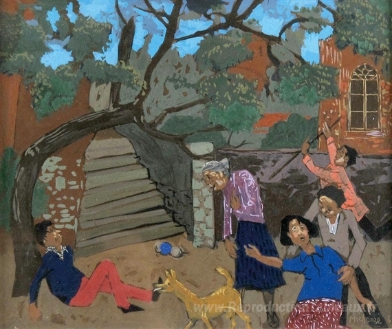 Nous vous proposons une reproduction artisanale sur toile du célèbre tableau 'Les figures' de Grégoire Michonze, provenant du Musée de la Reproduction.