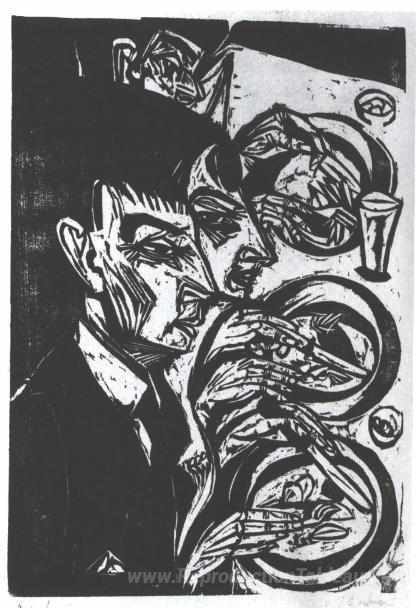 Nous vous proposons une reproduction artisanale sur toile du célèbre tableau 'Les gens nerveux mangeant' de Ernst Ludwig Kirchner, provenant du Musée de la Reproduction.