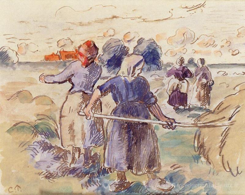 Nous vous proposons une reproduction artisanale sur toile du célèbre tableau 'Les tedders' de Camille Pissarro, provenant du Musée de la Reproduction.